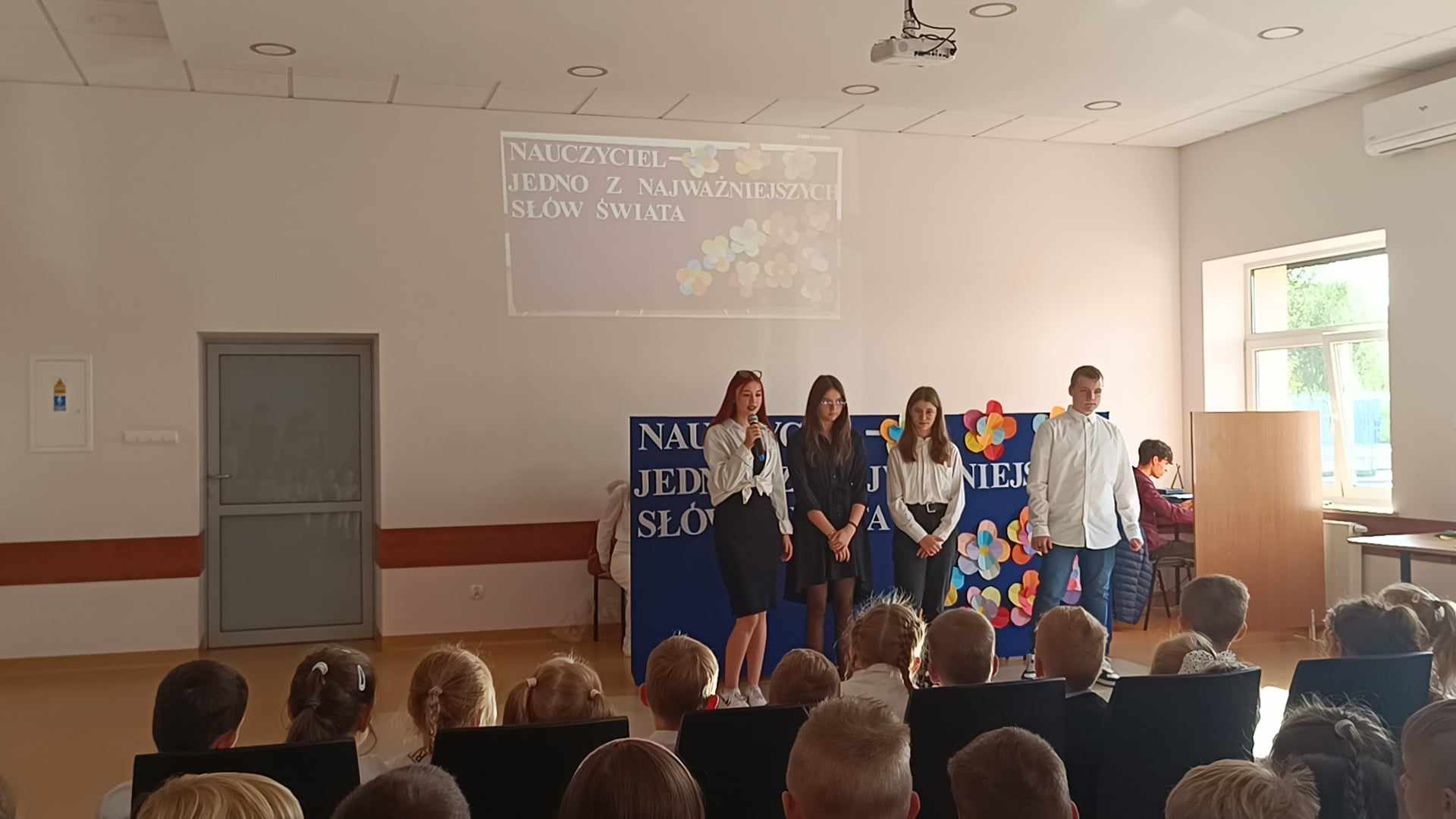 "Nauczyciel - jedno z najważniejszych słów świata", te słowa stały się hasłem przewodnim uroczystości z okazji Dnia Edukacji Narodowej. Ten dzień jest okazją do wyrażenia wdzięczności nauczycielom i pracownikom oświaty za trud włożony w naukę i wychowanie młodych pokoleń. Zwieńczeniem uroczystości był krótki program słowno-muzyczny przygotowany przez uczniów pod kierunkiem Pani wychowawczyni klasy pierwszej.